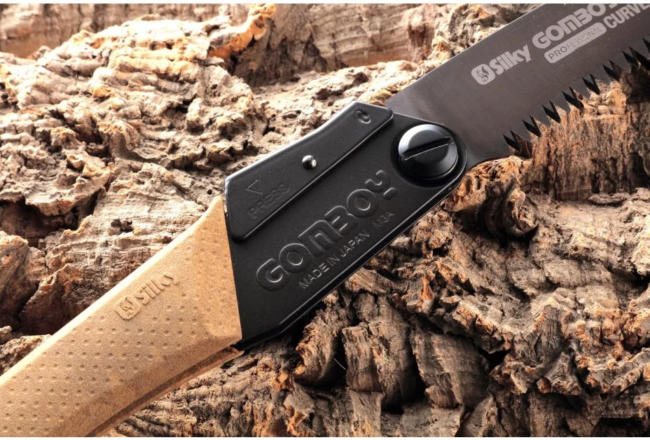The composite material handle (a mixture of wood and plastic) provides a warm and comfortable feel in the hand and superior control. It feels slightly harder to the touch than the standard GOM rubber handle on Silky saws, but offers a better grip when in contact with greasy or slippery substances. Take this saw wherever you go – the Gomboy Curve Outback Edition is compact, lightweight and comes with a sturdy transparent case.